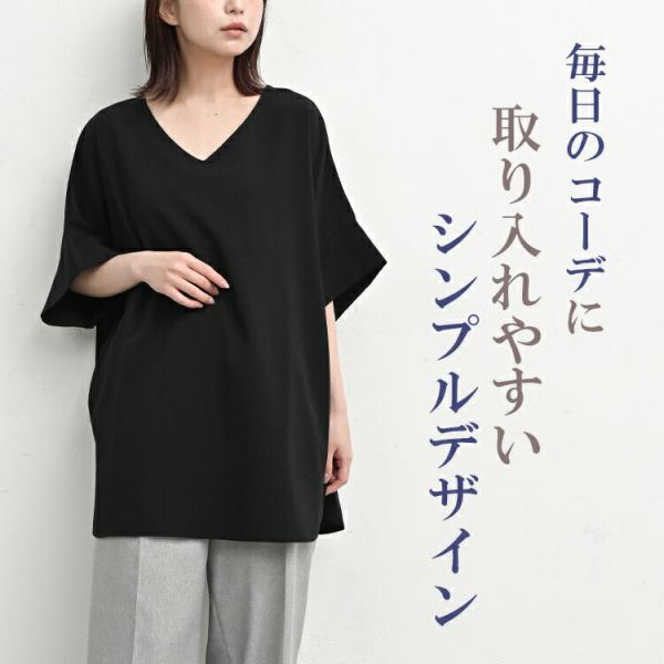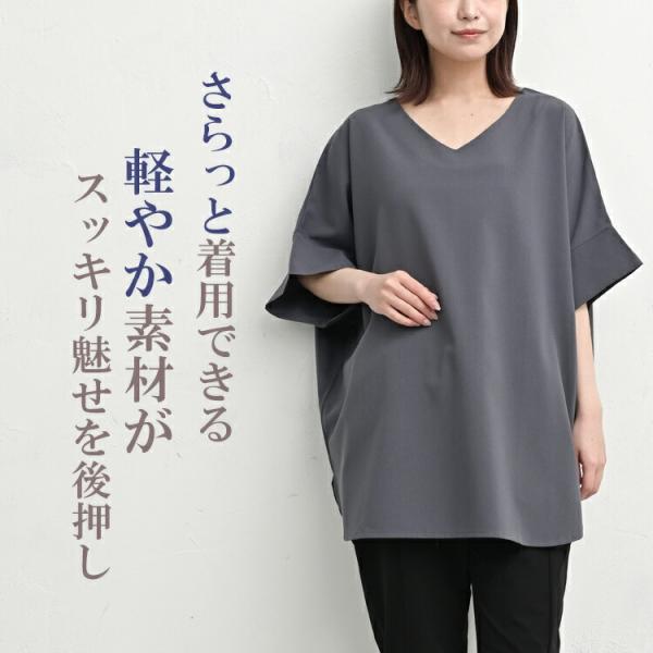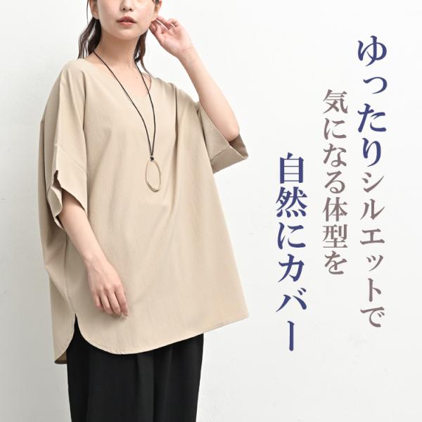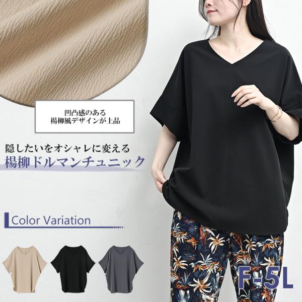 楊柳ドルマンチュニック 大きいサイズ レディース メール便送料350円 5分袖 Vネック プルオーバー トップス F LL-3L 4L-5L