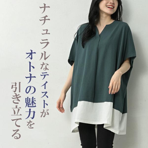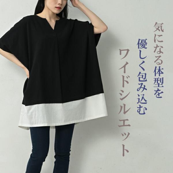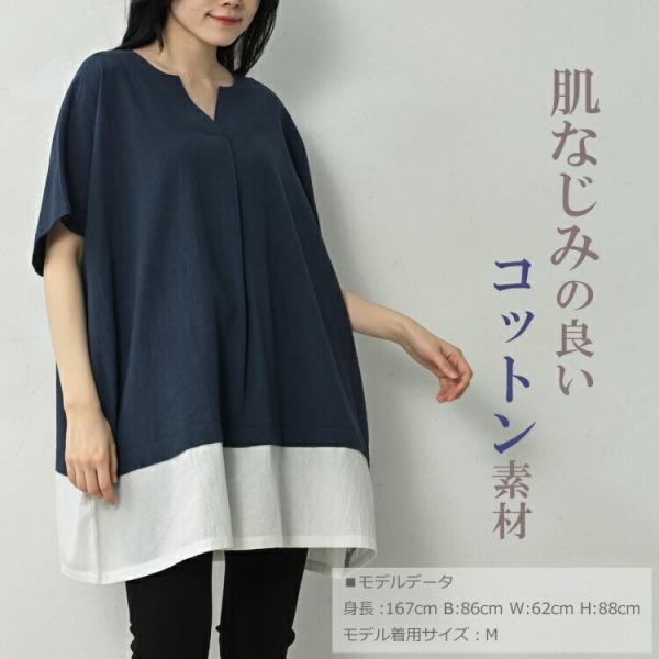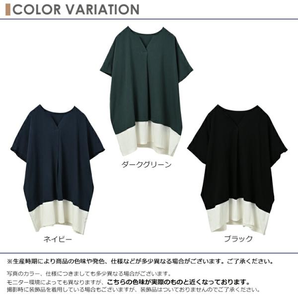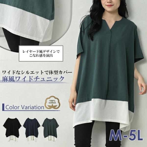 重ね着風チュニック 大きいサイズ レディース メール便送料無料 5分袖 身幅ワイド トップス cotton100 M LL-3L 4L-5L