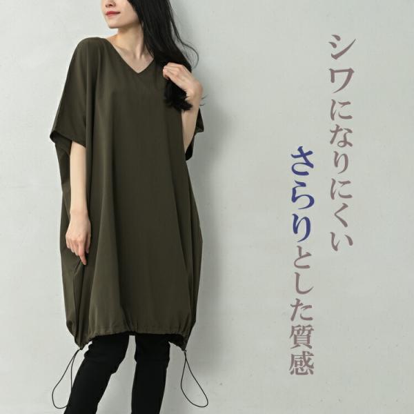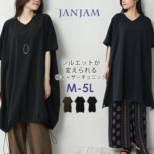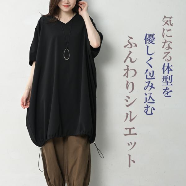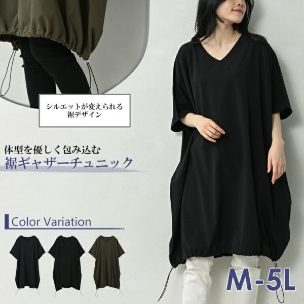 裾ギャザーチュニック 大きいサイズ レディース メール便送料無料 5分袖 Vネック プルオーバー トップス M LL-3L 4L-5L