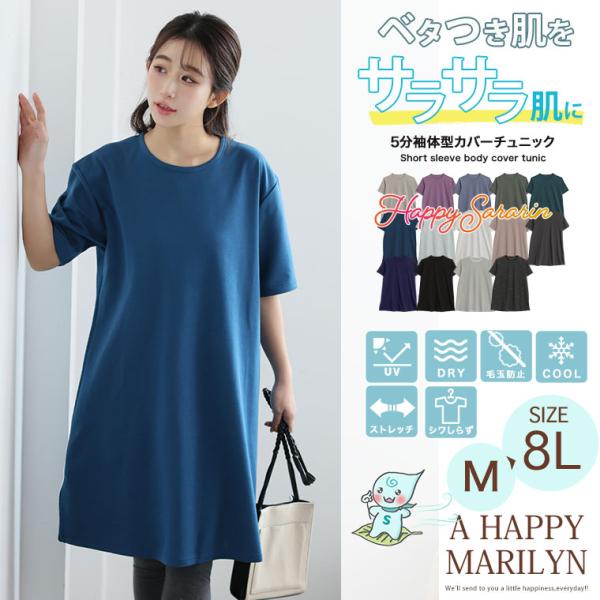 大きいサイズ レディース チュニック 新色・サイズ追加 ハッピーさらりん 五分袖 体型カバー チュニック チュニック トップス LL 3L 4L 5L 6L A