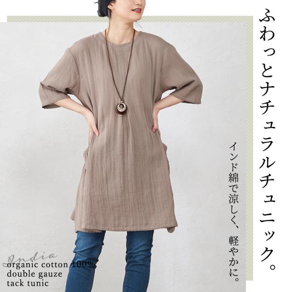 オーガニックコットン ダブルガーゼ ワンピース ロングシャツ ブラウス チュニック ロング丈 インド綿 綿100%