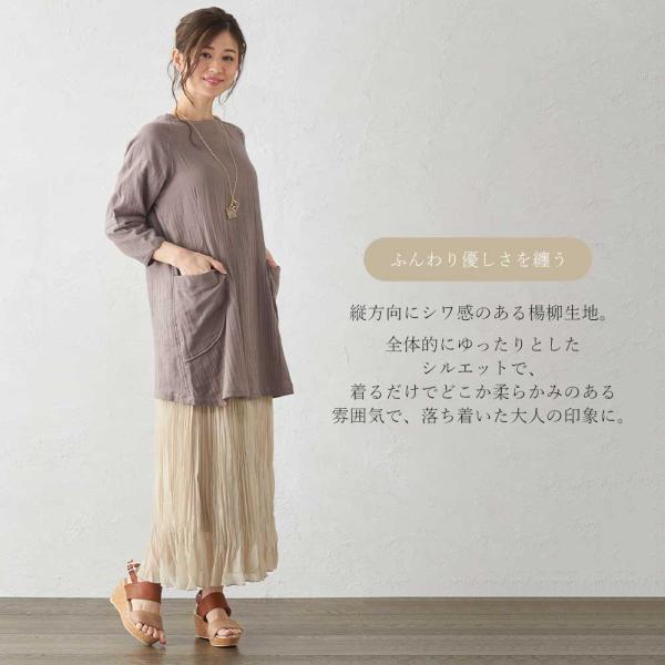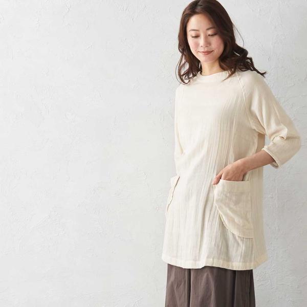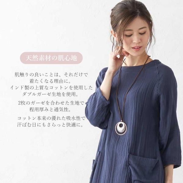 ダブルガーゼ チュニック ブラウス トップス レディース 5分袖 キレイめ ゆったり 春 コットン 綿 夏 30代 40代 50代