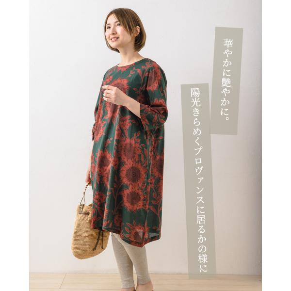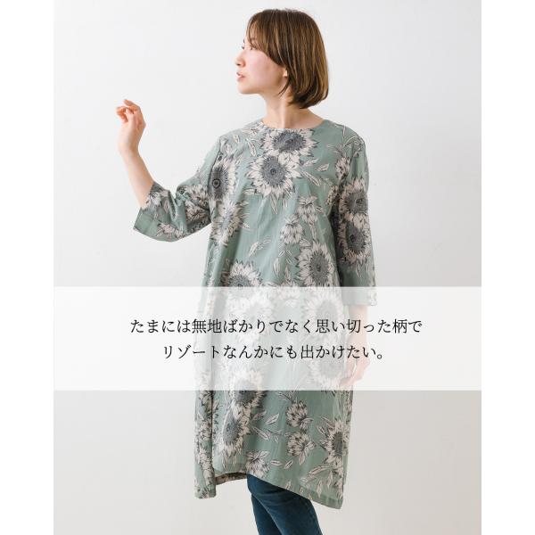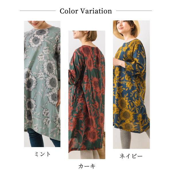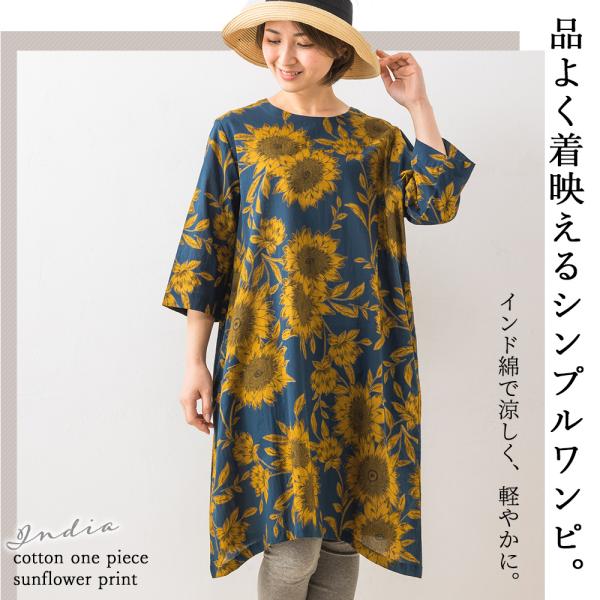 インド綿 綿100% プリント チュニック ブラウス 7分袖 レディース コットン 体型カバー 大人 春 夏 秋 30代 40代 50代
