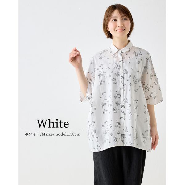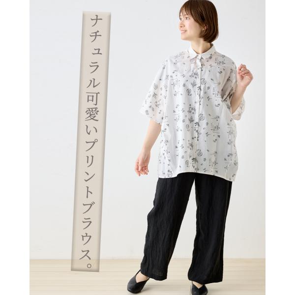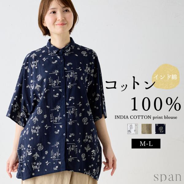 プリントチュニック シャツチュニック 綿100% コットン 半袖 花柄 アート インド綿 トップス レディース ゆったり 綿 ナチュラル カジュアル 体型カバー 五分袖