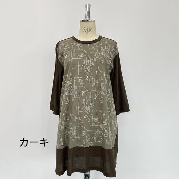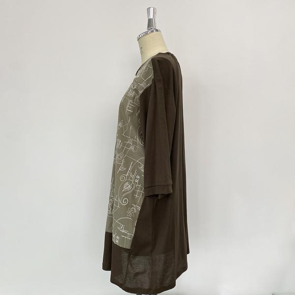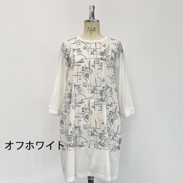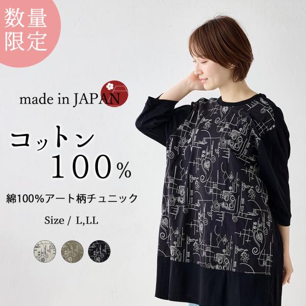 【限定品】綿100% コットン チュニック アート柄 半袖 トップス レディース 春 夏 秋 L LL クルーネック 丸襟 カジュアル さらさら 薄手 女性カジュアル