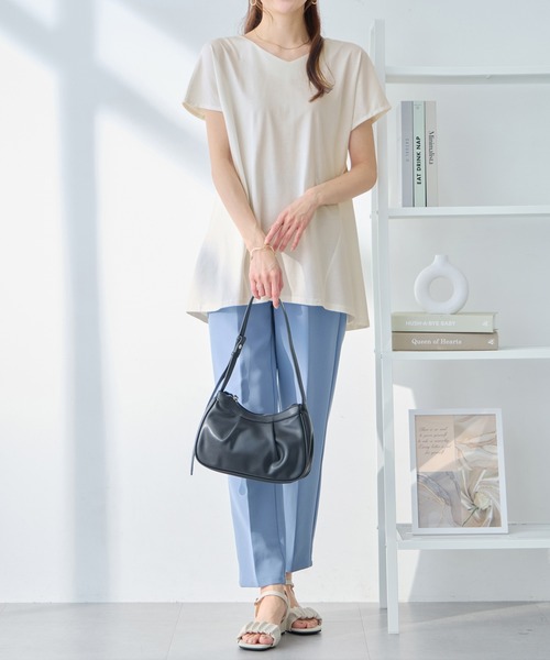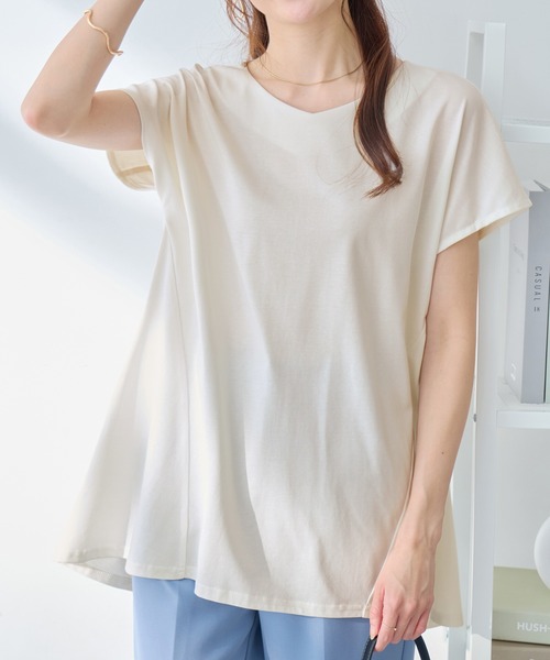 チュニック 細見え叶う!AラインフレアチュニックTシャツ