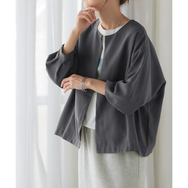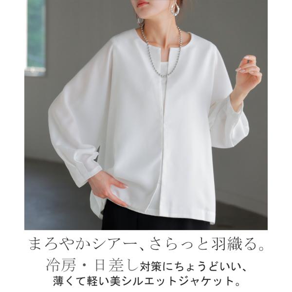 ジャケット ノーカラー アウター レディース ロング 無地 長袖 羽織 ライトアウター Uネック チュニック オーバーサイズ