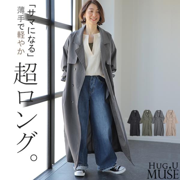 トレンチコート レディース 送料無料 コート アウター ロング ロングコート 大きいサイズ 黒 大人MUSE