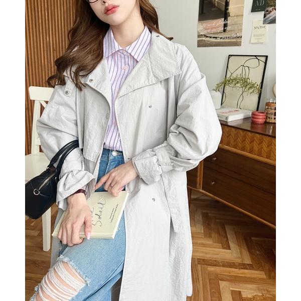 ステンカラーコート コート ナイロン スタンドカラーケープデザインロングコート レディース