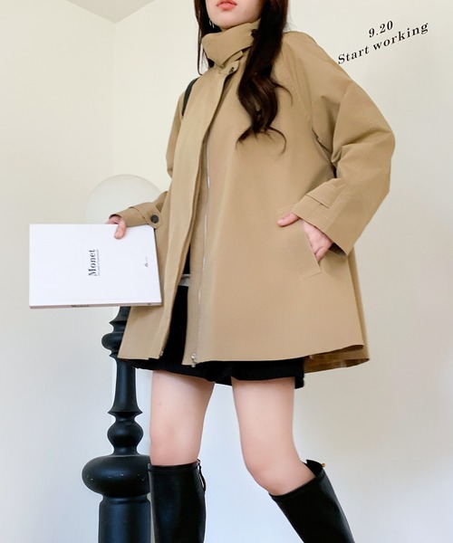 ステンカラーコート コート 撥水Aライン テントライン コート UVカットライトアウター レディース