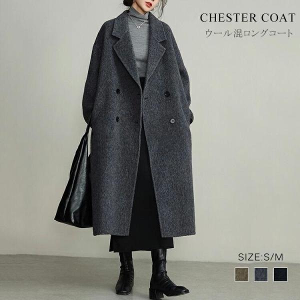 チェスターコート レディース 冬 ウール 混 秋冬 ロングコート アウター コート ロング トレンチコート 羽織り ウールコート 体型カバー ジャケット カジュアル