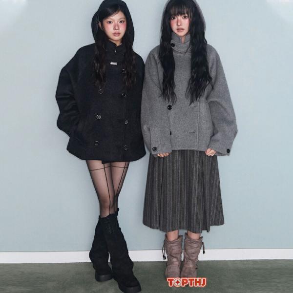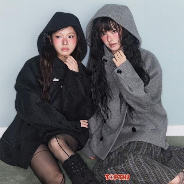 コート レディース アウター ウールライク 厚手 あたたか ふんわり スタンドカラー フード付き 防風 防寒 暖かい ボリューム感 カジュアル ゆったり こなれ感