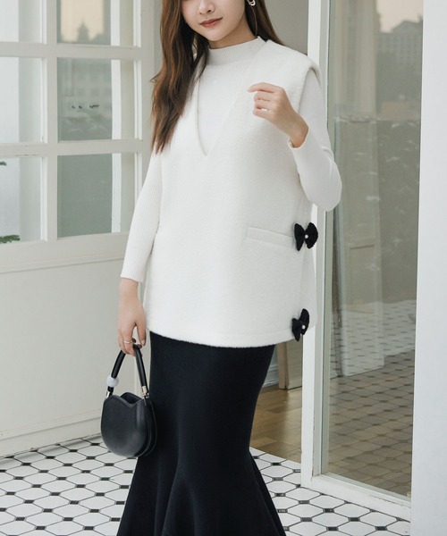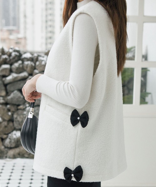 コート チェスターコート ラシャVネックノースリーブベスト レディース