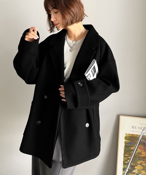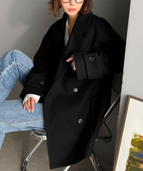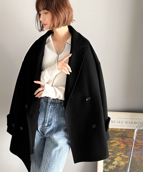 コート チェスターコート トレンドを先取り♪こなれ感UP、ダブルボタンジャケットメルトンコート(ミドル丈) レディース