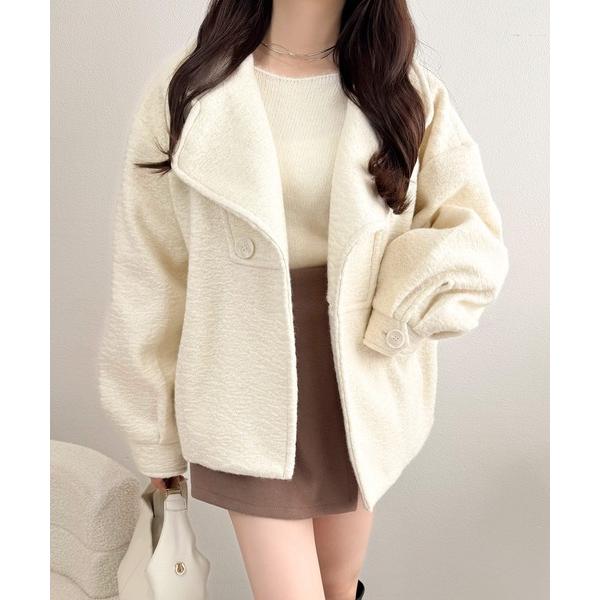 コート チェスターコート 「mily bilet」コクーンで魅せる。ウールライクリングニットスタンドカラーコート レディース