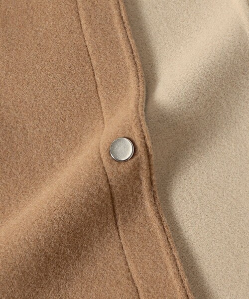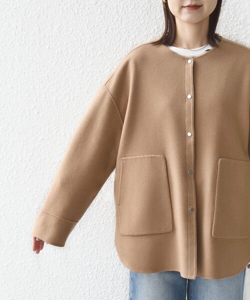 ノーカラーコート コート セミ 梳毛 配色 リバー ノーカラー コート レディース