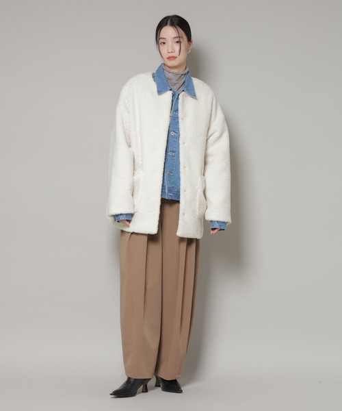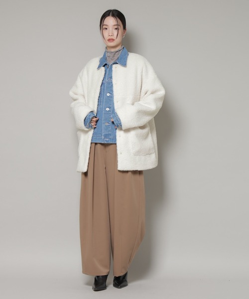 ノーカラーコート コート ソフトボアノーカラーミドルコート レディース
