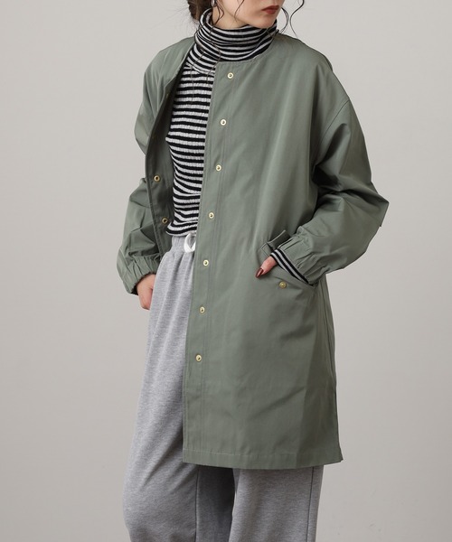 ノーカラーコート コート 撥水加工フィッシュテール ノーカラーコート レディース