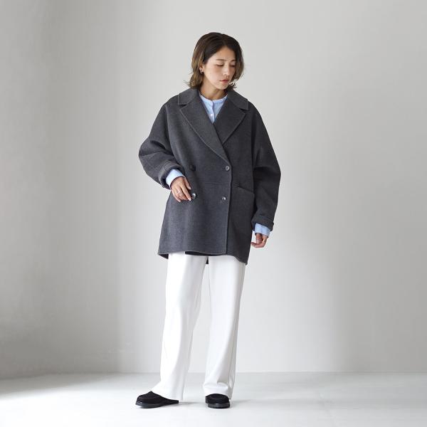 YENN(イェン) ダブル フェイス ピーコート / Pコート リバーコート ミドル丈 ドルマンスリーブ 軽量 DOUBLE FACE PEA COAT