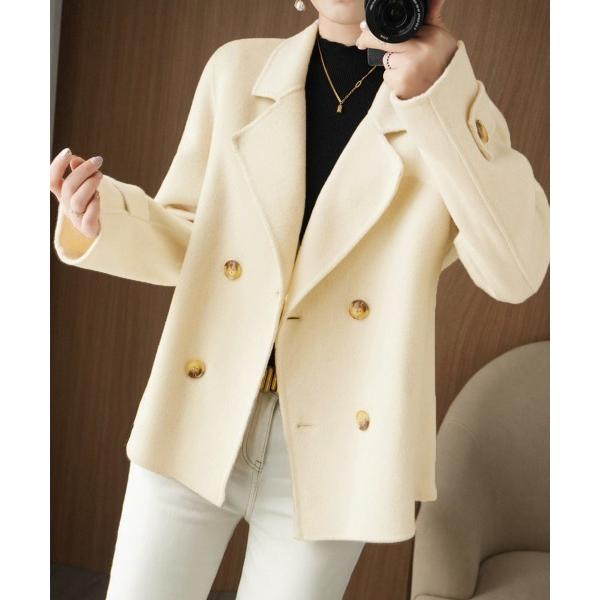 ピーコート pコート ウールタッチダブルブレストショートコート レディース