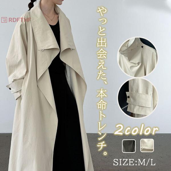 トレンチコート レディース ロングコート アウター スプリングコート ロング丈 ライトアウター コート トレンチ ベルト付き フォーマル ゆったり オフィス