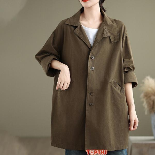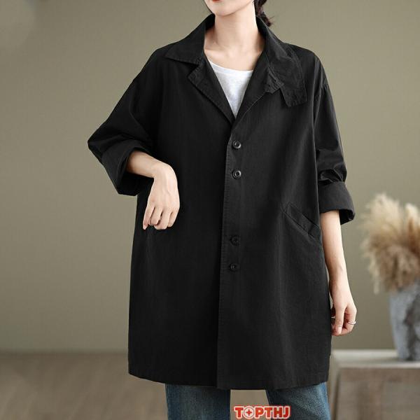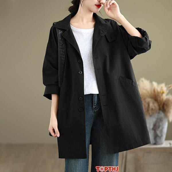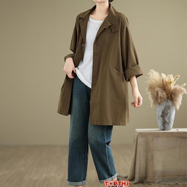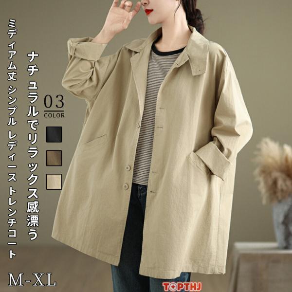 トレンチコート レディース アウター トップス ロング丈 軽量 薄手 保温 防風 防寒 大人 ゆったり カジュアル シンプル 体型カバー 春秋 羽織 通勤 オフィス