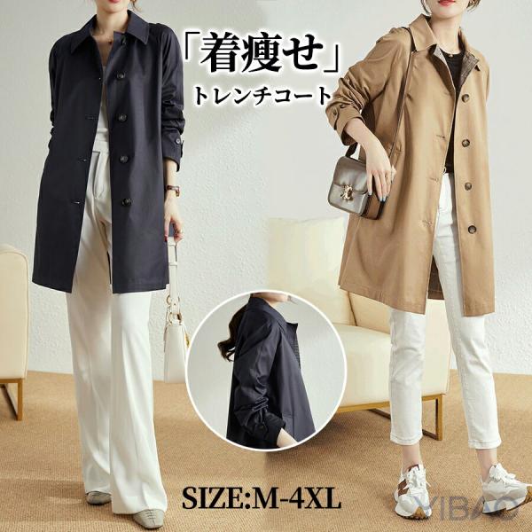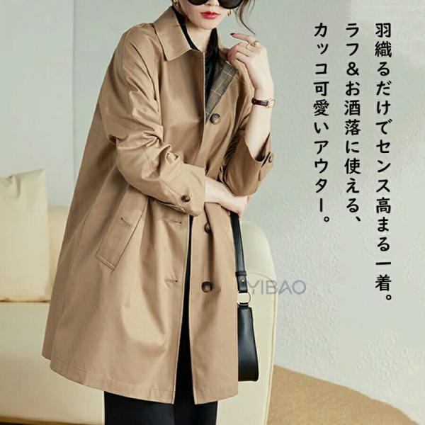 トレンチコート スプリングコート レディース 春 秋 チェスターコート ミドル丈 フードなし トレンチコート レディース ボタン コート 着痩せ コート シンプル