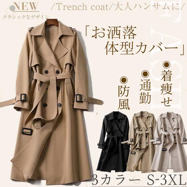 トレンチコート レディース ロング 春秋冬アウター ジャケット チェスターコート 大きいサイズ ゆったり 無地 カジュアル ファッション 防風 通勤 エレガント
