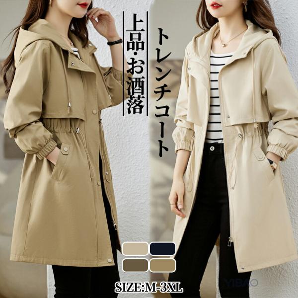 トレンチコート レディース春秋 プリングコート ショートコート 羽織り ミドル丈 フレアトレンチコート アウター 裹地付き上品 ゆったり 大きいサイズ 通勤 通学