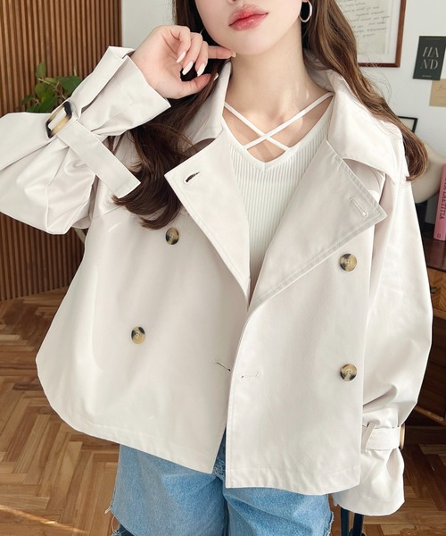 トレンチコート コート 「累計販売枚数1万枚突破!」コットンライクツイルキャンディスリーブショートトレンチ レディース