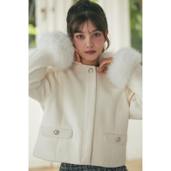 ダッフルコート コート 取り外し可能なファー付きビジュー装飾ショートコート レディース