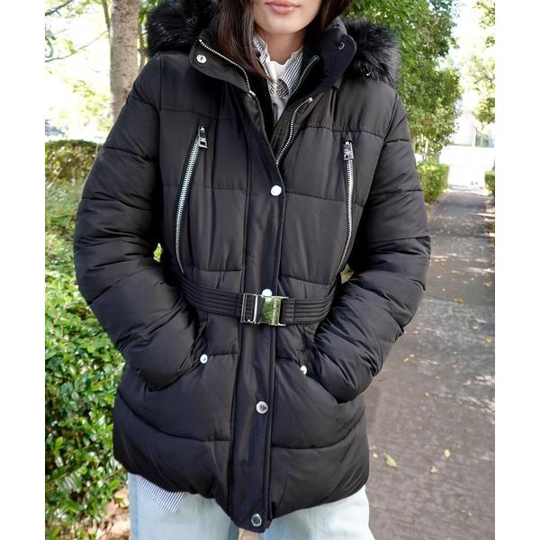ダウンコート ダウンジャケット ベルテッド フォー ジップ ダウンジャケット レディース