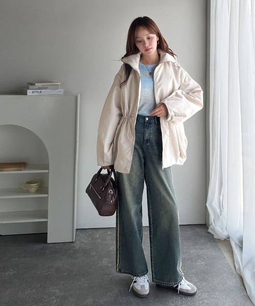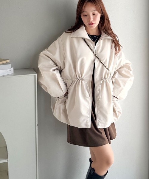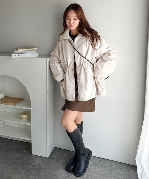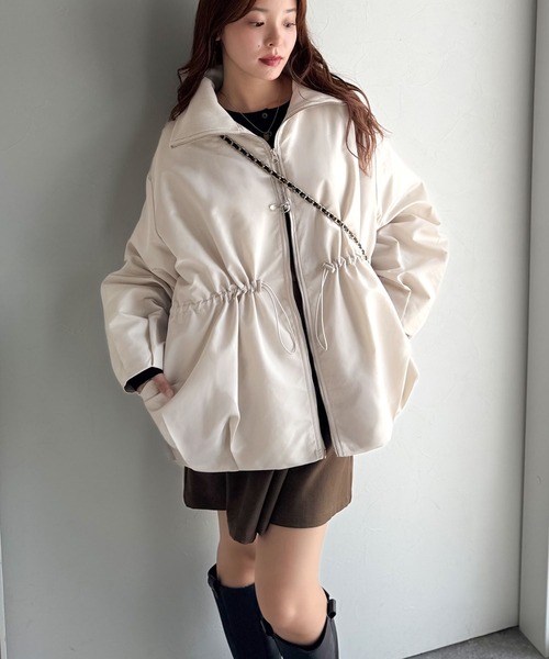 ダウンコート ダウンジャケット 春まで活躍!衿リブ ハイネック ダブルジップ バルーン 軽量中綿コート(オーバーサイズ) レディース