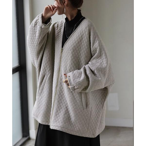 ジャケット ノーカラージャケット ドルマンの上に着られる キルティングアウター レディース