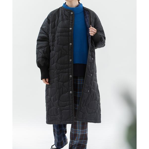 コート アウター ノーカラースワンキルティングロングコート レディース