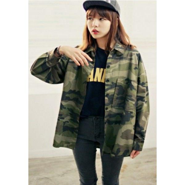 迷彩柄 カモフラージュ カモフラ ビックシャツ ジャケット レディース トップス ミリタリー