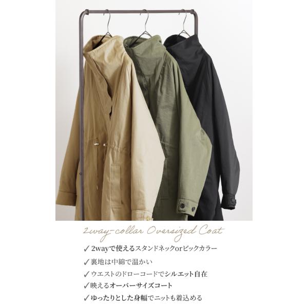 コート 2way ミリタリーコート ロング アウター モッズコート Vネック スタンドカラー 長袖 無地 オーバーサイズ