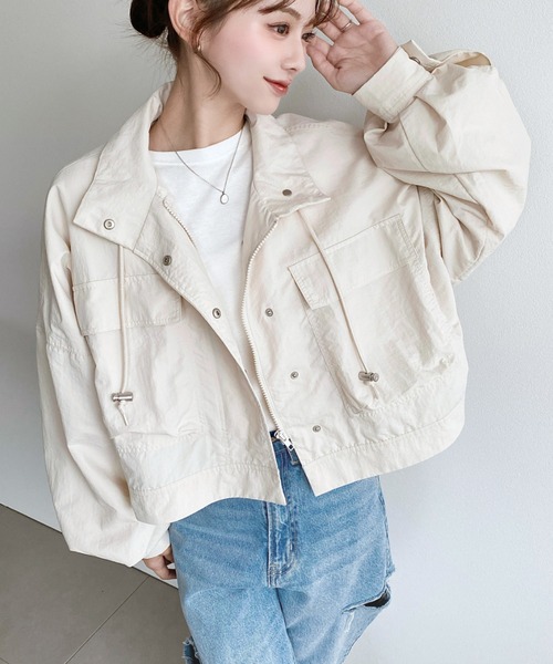 ミリタリージャケット モッズコート ナイロンワッシャースタンドショートジャケット レディース