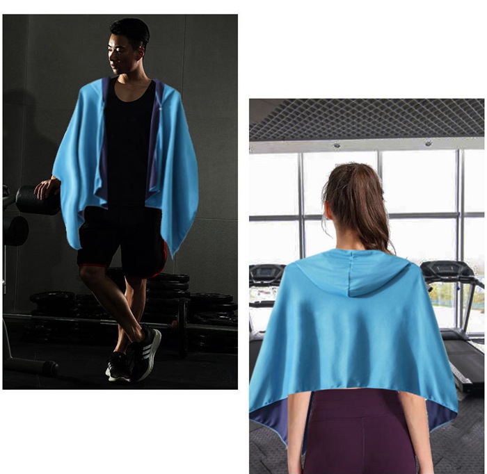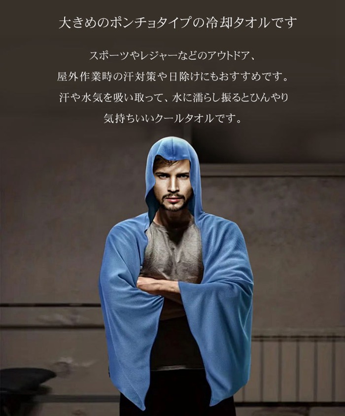 冷感タオル 大判 フード付き 冷却 ポンチョ ククールタオル ひんやり 涼しい 熱中症対策