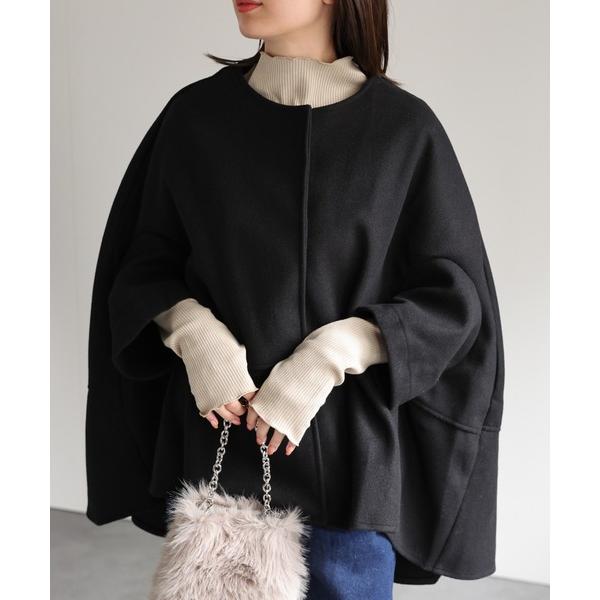 ポンチョ フェイクウール ノーカラーケープコート/ポンチョ/秋冬 レディース