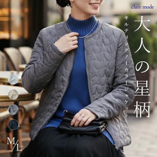 【送料無料】 星柄キルトの中綿ジャケット 4色 M L 長袖 中綿 レディース アウター ジャケット コート ブルゾン 中わた 星柄 キルティング 防寒 きれいめ 春秋冬