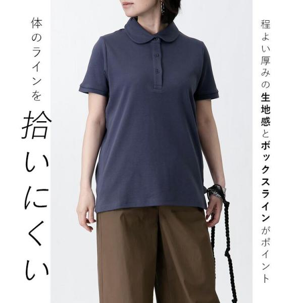 【送料無料/再入荷】 綿100%丸襟ポロシャツ 4色 M L 洗える 半袖 レディース トップス プルオーバー ポロシャツ 定番 安心 夏