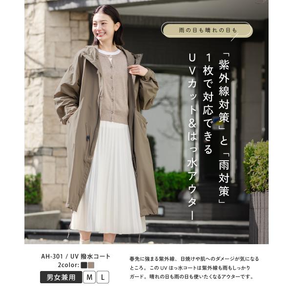 ウィンドブレーカー UVカット メンズ レディース ロング コート 撥水 レインコート 薄手 軽量 紫外線対策 自転車 AH-301 UV撥水コート