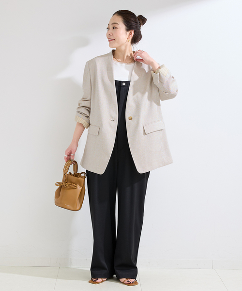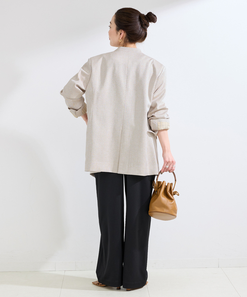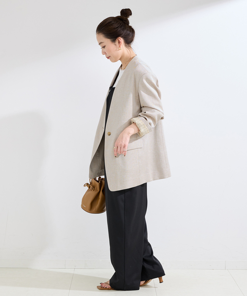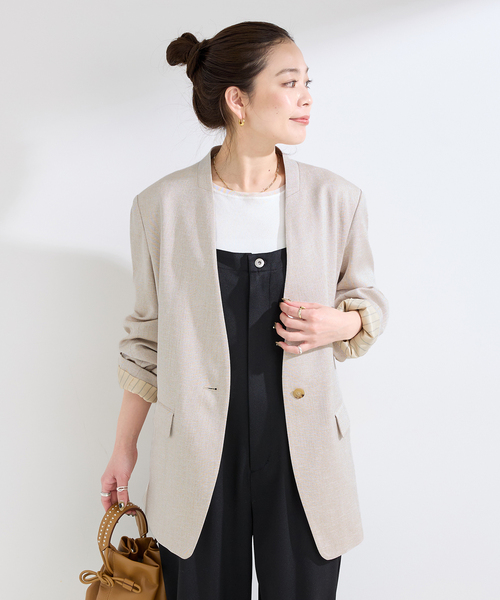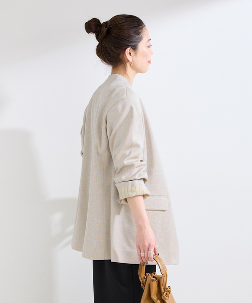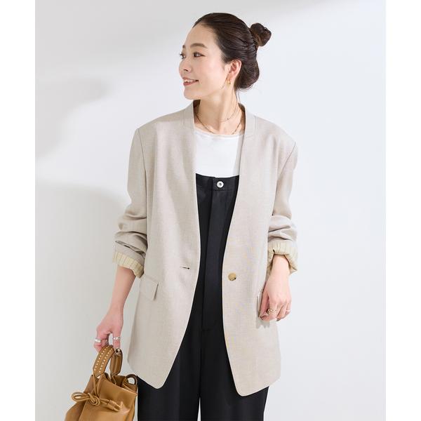 ジャケット ノーカラージャケット 手洗い可 / リネンライクC/LESSジャケット レディース