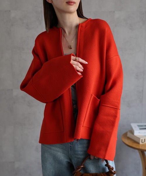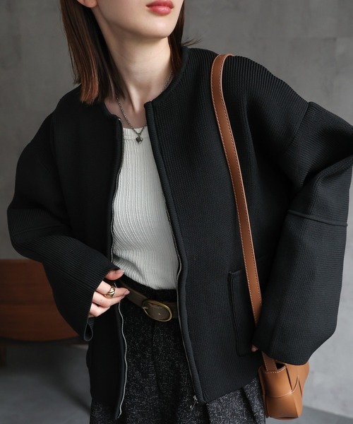 ジャケット ノーカラージャケット 「新色追加」 ランタンスリーブショートブルゾン/カーディガン/ノーカラージャケット レディース