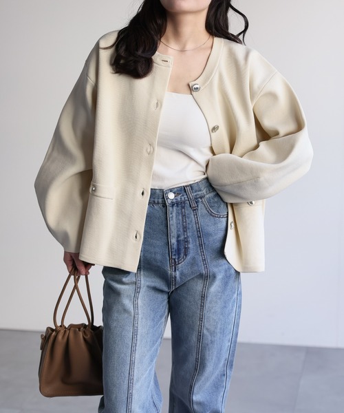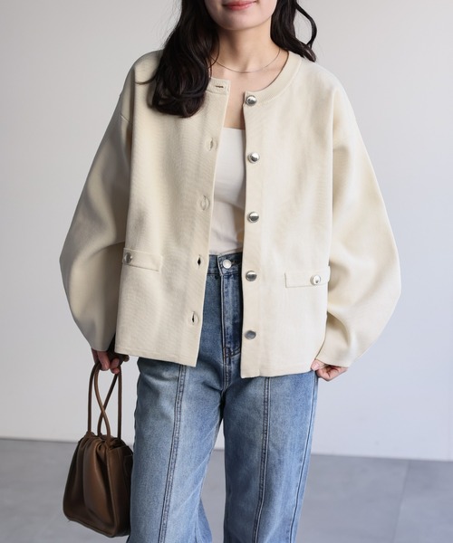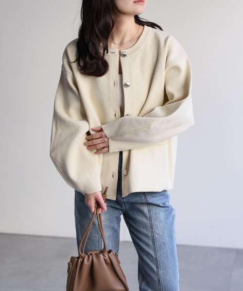 ジャケット ノーカラージャケット ノーカラーニットカーディガン / ニットジャケット レディース