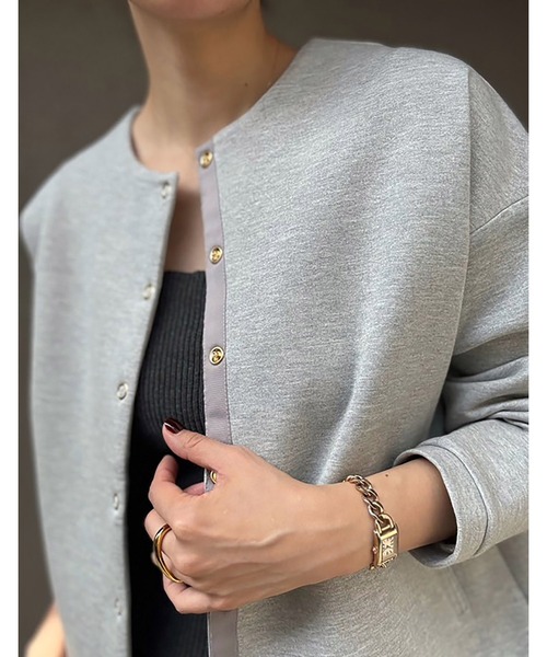 ジャケット ノーカラージャケット 「大人カーデ」ダンボールノーカラージャケット レディース