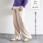 パンツ ワイドパンツ ロング レディース 春 秋 黒 白 おしゃれ 30代 40代 50代 スウェット ズボン ボトムス 大きいサイズ [郵3]^b387^