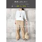 パンツ ワイドパンツ レディース 春 夏 黒 白 おしゃれ コットン 綿 麻タッチ セミワイド ボトムス ストレート [郵3]^b392^