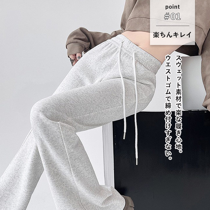 パンツ レディース 秋 冬 黒 おしゃれ かわいい 30代 40代 50代 ロング フレアパンツ ベルボトム スウェット ジャージ [郵3]^b483^